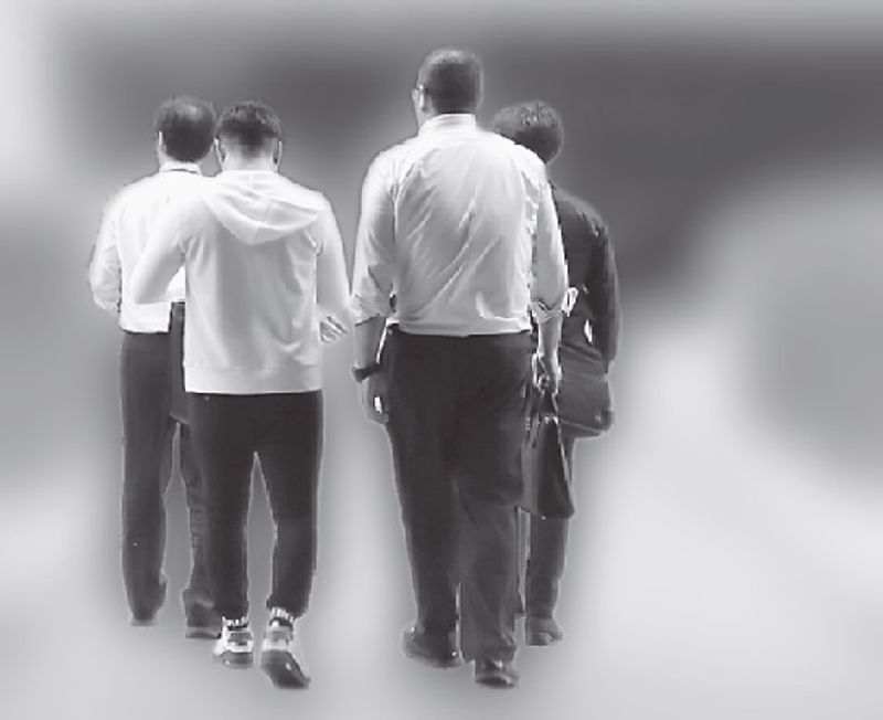 会議室から逃亡した男(上)。もう1人は警察の任意同行に応じた(下)【写真は関係者提供。一部を加工しています】
