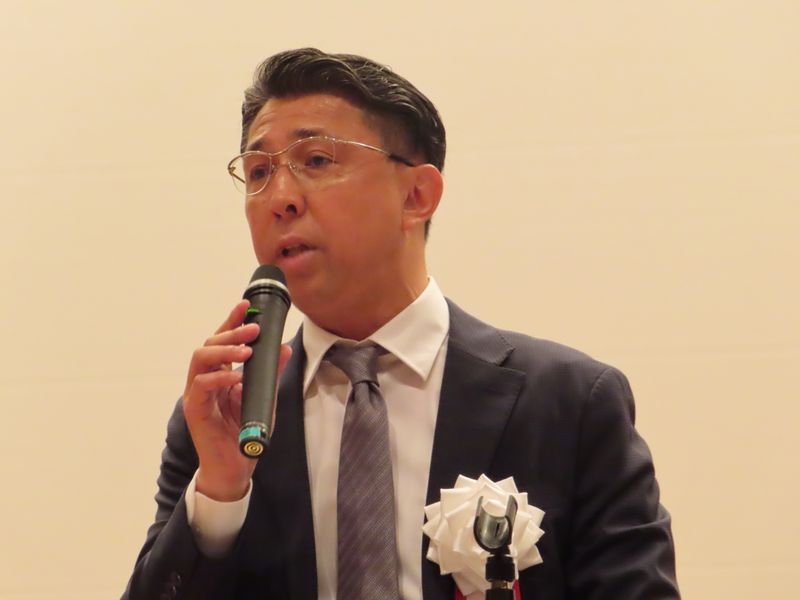 大規模修繕工事業者の談合疑惑については取材に対し「現時点では不確定な情報が多いため何ともしようがない。事実は事実として受け止めるしかないので、捜査の結果を見守る」と話した。 あいさつする大西会長