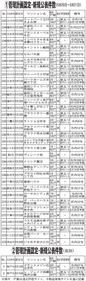 5月19日現在の掲載数は2340件だったがその後2件分を追加掲載しており、5月20日から31日までに新たに公表された認定マンションは36となった。