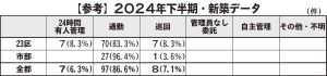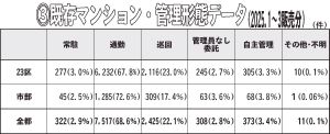 表③には既存分譲マンションの管理員の勤務形態を示した。今回から、管理業務を委託しているが管理員がいない「管理員なし 委託」を項目に加えた。2・8%が該当している。