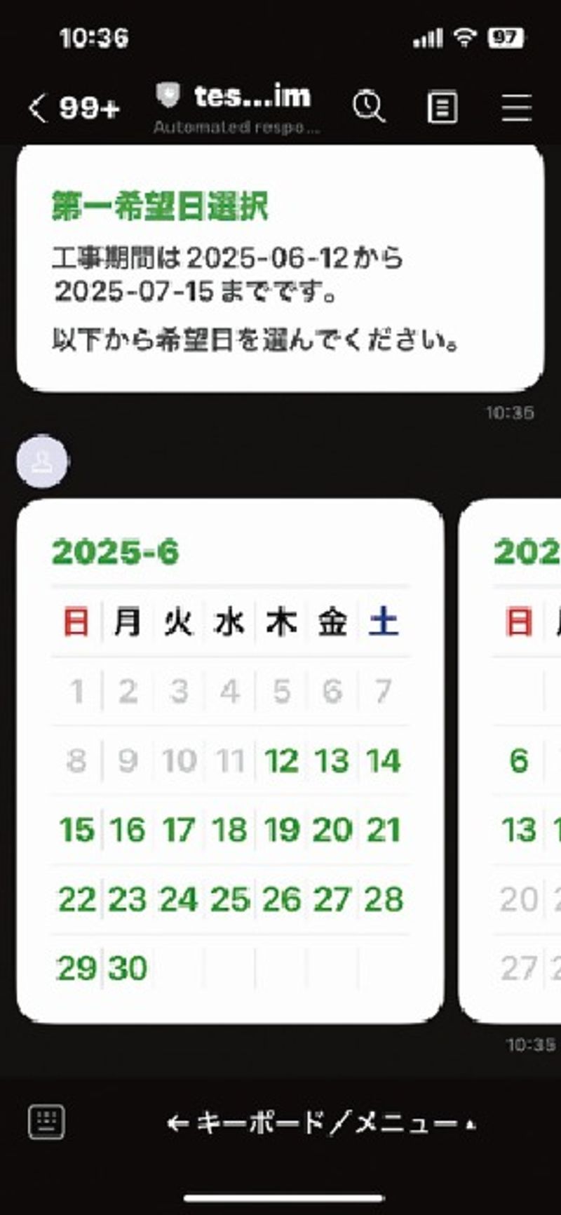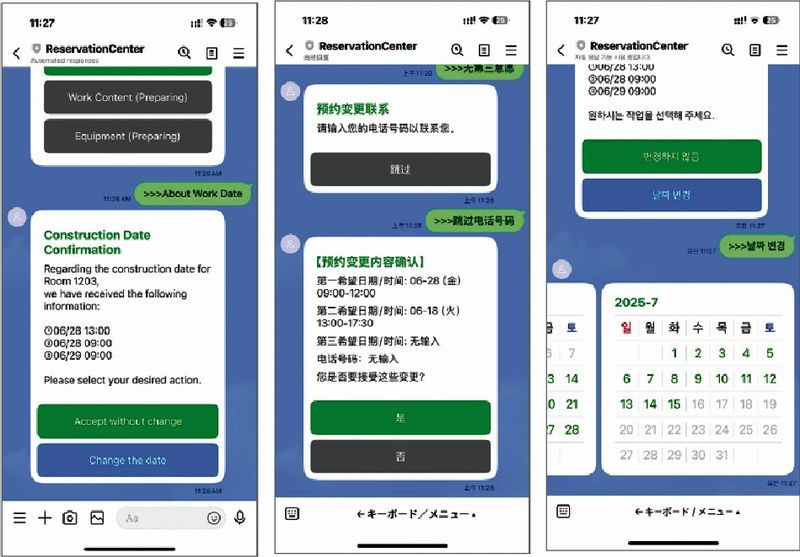 LINEでの操作がより易しくなり、まるで会話するかのようなメッセージのやり取りで工事日程の確認、変更が可能になった。