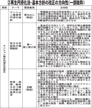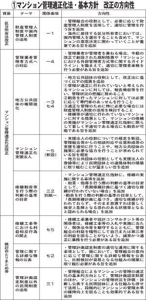 マンション管理適正化法の基本方針改正の方向性は表①参照。