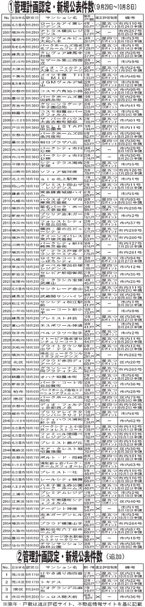 9月28日現在の掲載数は2881件だったがその後4件分を追加掲載しており、9月29日から10月8日までに新たに公表された認定マションは76。