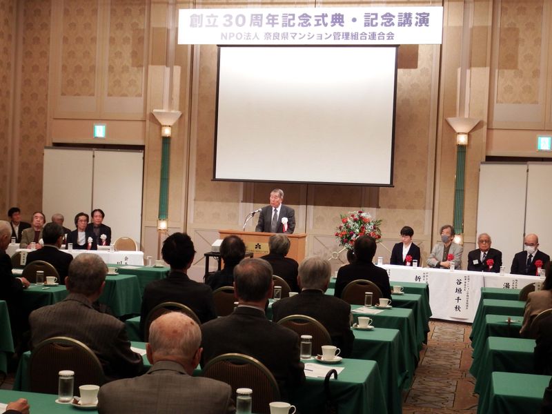 NPO法人奈良県マンション管理組合連合会は11月9日、奈良市のホテル日航奈良で創立30周年記念式典・記念講演会を開いた。